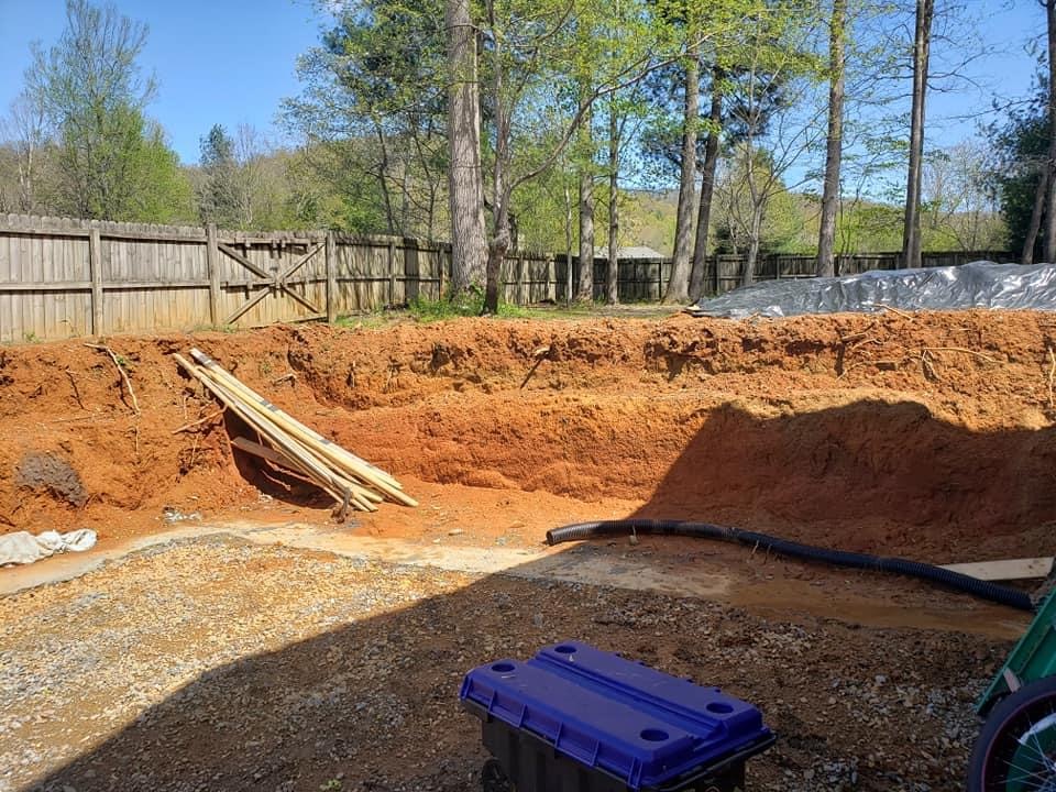 A custom retaining wall installation that includes excavation, gravel base preparation, and stone setting.